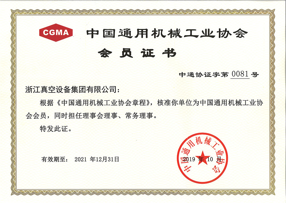 中國(guó)通用機(jī)械工業(yè)協(xié)會(huì)會(huì)員證書